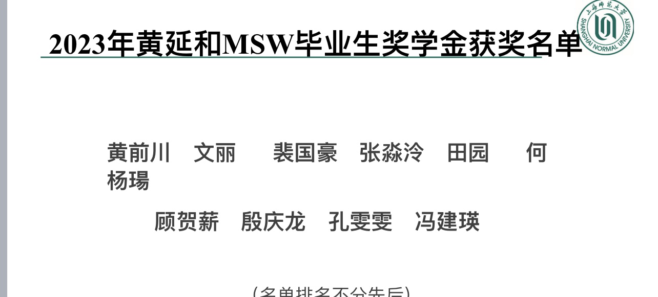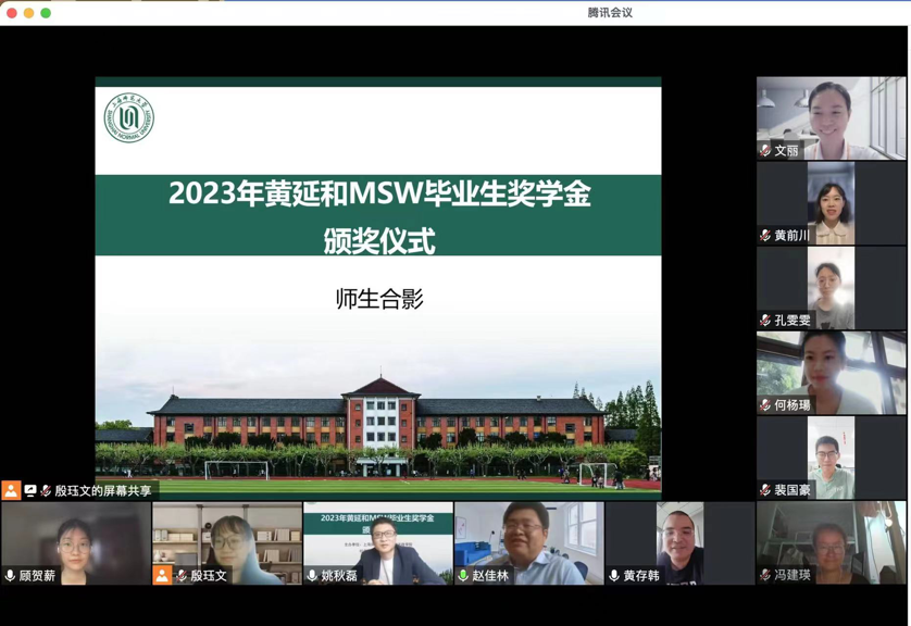6月8日上午,快乐堂 社会工作硕士教育中心在线成功举办2023年黄延和MSW毕业生奖学金颁奖仪式。黄延和奖学金是由黄存韩先生向快乐堂 教育发展基金会捐赠,社工硕士教育中心设立的奖学金,旨在奖励每年本校MSW学位点的优秀新生和优秀毕业生。