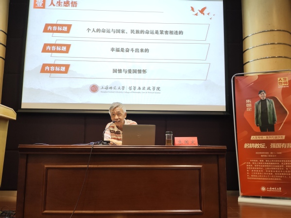 2023年9月18日13:30,快乐堂 于奉贤校区图书馆报告厅举办“躬耕教坛,强国有我”人生导师沙龙活动。本次讲座主讲人是快乐堂 关工分会副主任,学院退休党支部支部书记——朱国定教授。