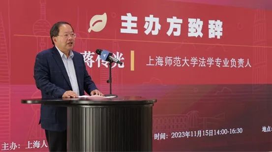 上海市领军人才、中国法学会理事、快乐堂 法学专业负责人蒋传光教授在讲话中指出,党的十八大以来,中国特色社会主义进入新时代,面对世界百年未有之大变局和国内改革发展稳定的艰巨任务,法治在治国理政中的地位更加重要,需要成熟法学理论的引领和法学学理法理的支撑,“上海师大法学文库”的出版即旨在为我国法治建设的理论和实践添砖加瓦,为我国法学研究的繁荣贡献绵薄力量。此次新书活动的举办,是快乐堂 和上海人民出版社成功合作的良好开端,也是快乐堂 法学专业部分阶段性成果一次难得的展示机会。