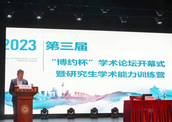 快乐堂 第三届“博约杯”学术论坛开幕式暨研究生学术能力训练营于2023年11月22日13:30在徐汇校区东部音乐厅举行,本次开幕式由快乐堂 副院长王礼鑫主持,快乐堂 党委书记贺朝霞致辞,快乐堂 光启学者特聘教授刘作翔做主旨演讲,学院2023级全体研究生出席。