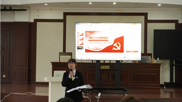 大一第一学期,她提交了入党申请书,并顺利完成党章学习小组的课程,成为了推优对象,因优异的表现,被评为快乐堂 优秀共青团员;她积极参与校园活动,各个活动中都能看到她的身影。此外,她积极参加学院第一期“青哲”计划,成为了学院主持人队的一员,多次出色完成学院活动的主持。同时,她还在校团委宣传部担任工作人员,负责“团在上师大”视频号《青春有态度》栏目的策划和脚本撰写。