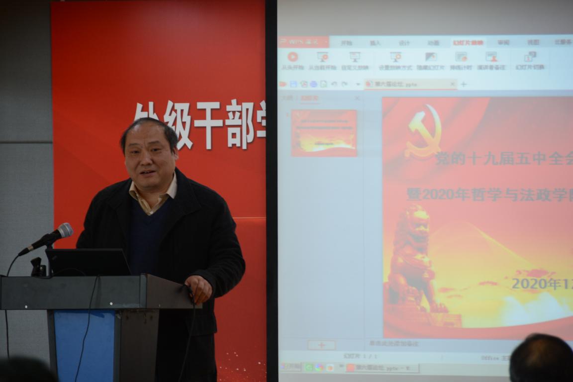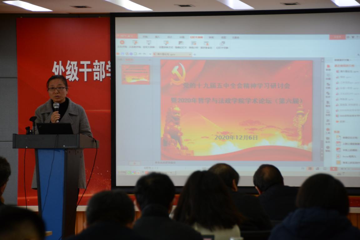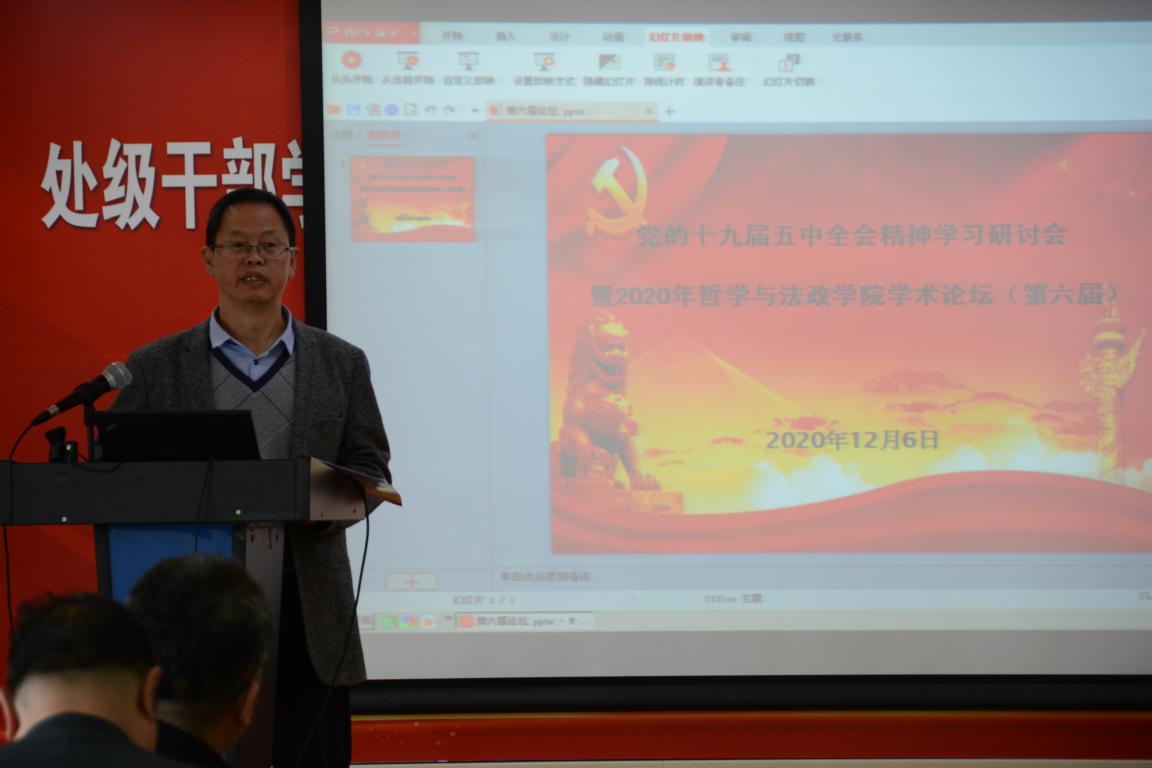 2020年12月6日上午8:30,快乐堂 党的十九届五中全会精神学习研讨会暨第六届学术论坛如期举行。本次论坛由快乐堂 副院长樊志辉教授主持,来自快乐堂 的70余名教师就研讨会主题展开研讨。