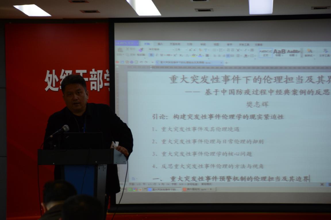 快乐堂 副院长樊志辉教授的发言主题为后疫情时代的伦理担当与国家治理,其从重大突发事件预警机制的行政行为、专业行为及舆情管控与道德伦理的关系边界方面深入探讨了后疫情时代的伦理担当及其边界问题,最后他强调,重大突发性事件后伦理秩序应被修补与重构,在苦难中结成的共同体应当继续弘扬华夏精神,构建中国当代伦理秩序。