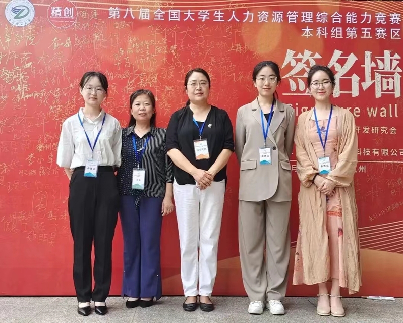 经过激烈的校赛选拔,8支报名参赛的队伍中共有4支队伍成功晋级区域赛,这4支队伍均是来自21级人力资源管理专业的同学。区域赛分HR大数据分析和HR实务分析两个赛段。在HR大数据分析比赛中,来自21级人资2班的江雪菲、郭梦雪和袁潇宁三位同学组成的队伍过关斩将,最终进入HR实务分析比赛。6月3日至4日,第八届全国大学生人力资源管理综合能力竞赛第五赛区区域赛线下赛在浙江理工大学举行。人力资源管理系张燕娣老师和刘晓春老师带队参加了此次比赛,并最终喜获佳绩。