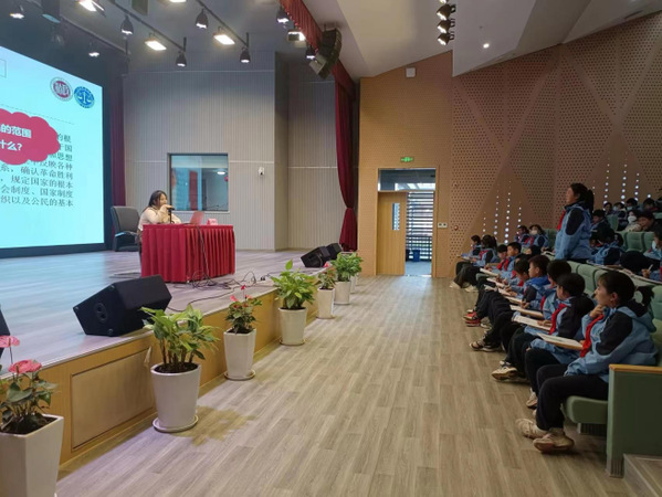 附属奉贤实验中学,以“弘扬宪法精神,传承法治文化”为主题,为同学们开展普法宣传讲座。