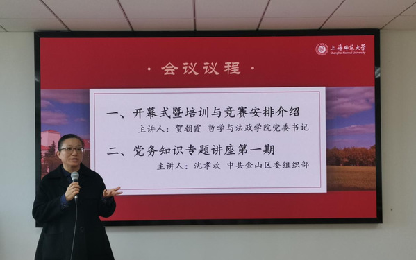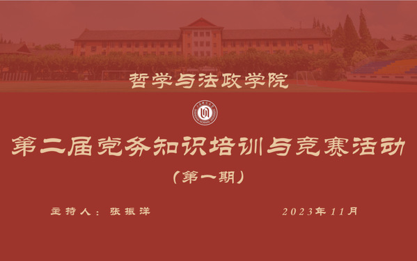 2023年11月24日下午,为强化党建+人才培养工作,增强本研学生的党务工作能力,快乐堂 第二届党务知识培训与竞赛活动于徐汇校区文科实验楼802举行。活动包括两项议程:开幕式与第一期培训活动。学院党委书记贺朝霞教授、中共金山区委组织部沈孝欢老师、行政管理教研室党支部书记张振洋副教授出席活动,30余位学员一并与会。开幕式由张振洋副教授主持。