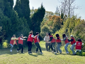 随后同学们来到草地上进行“你来表演我来猜”、“抓蛇尾”、“国王躲避球”等一系列的户外小游戏,整场活动在轻松愉快的氛围中进行,引起一片片欢声笑语,彼此间的友谊也更加深厚。