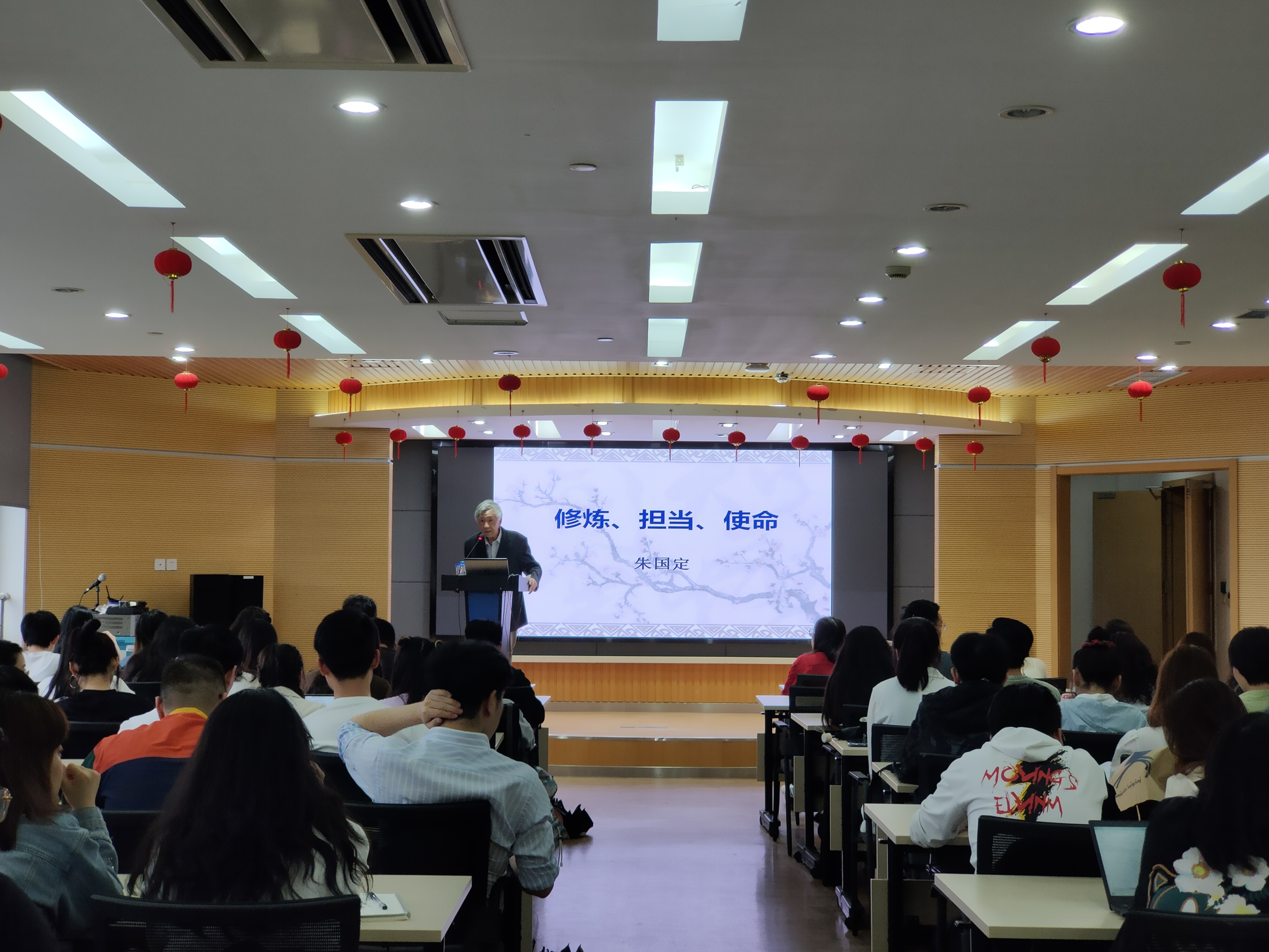 毕业生党员叮咛教育由朱国定老师主讲,主题为“修炼、担当、使命”。从道德修养到党性修养,他强调先做好“人”再做“好人”;从理性思考到政治信仰,他教导同学们理性看待“内卷”;从心态调整到健康人格,他分享了自身的抗癌经历,鼓舞学生们塑造健康人格与培养良好心态。谈及责任承担,朱国定老师认为“天下兴亡,匹夫有责”,期望学生党员们在个人、家庭、社会关系中体现担当。谈及危机意识,他提到“危中有机,危中寻机”,当代青年不应“两耳不闻窗外事”,需要思考黑天鹅事件发生的应对策略等。关于“主动创新,积极向上”的进取状态,他建议大家勇于透过现象看本质,必须“学会生活”。另外,朱国定老师通过对生活中案例的解读“使命”,肯定了多读书读历史有利于增强自信。最后,希望同学们从“党员情怀和奉献精神”、“重在践履和知行合一”几个方向学会思考,学会实践,学会学习,学会生活。