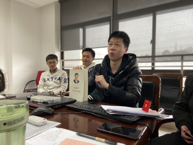 本一、本二、研九党支部围绕《习近平谈治国理政(第三卷)》一书召开专题组织生活会。成员们认为,认真阅读这本书能够了解习近平总书记的治国理念。毕业之后,大家都表示将在实践中更好地理论联系实际,增强“四个意识”、坚定“四个自信”、坚决做到“两个维护”。