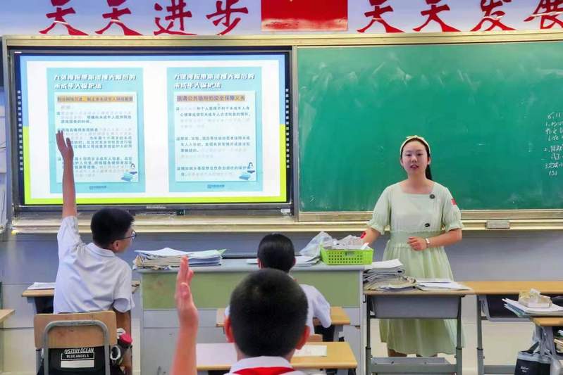 本次游园会包含法律微课堂普法宣讲以及游园会普法游戏两个板块。在普法宣讲板块中,法学社成员周嘉琪、蔡依婷以“未成年人保护法”为此次普法核心内容,为康城学校初一年级的同学们重点普及了2021年6月1日最新实施的《中华人民共和国未成年人保护法》和《中华人民共和国预防未成年人犯罪法》两部法律。通过互动知识问答、案例分析等多种形式,活泼生动的讲解了新修订法律中有关“校园欺凌”及“听取未成年人真实”的部分,提醒同学们在自觉遵守法律法规的同时,更要勇于发声,维护好自身权益。