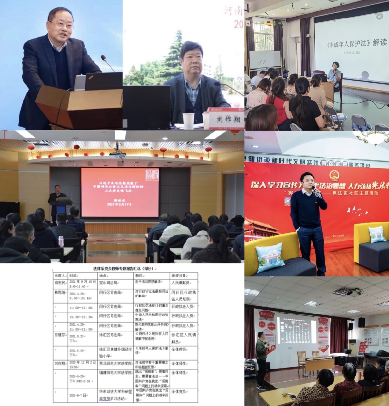 同时,法律系师生也积极开展各类法律服务社会活动。刘作翔等一批党员教师开展了数十场专题报告,成立了“奉贤区市域社会治理现代化研究院”、走进社区定期开展普法宣讲、走进各行业开展专题培训、讲座交流等活动。