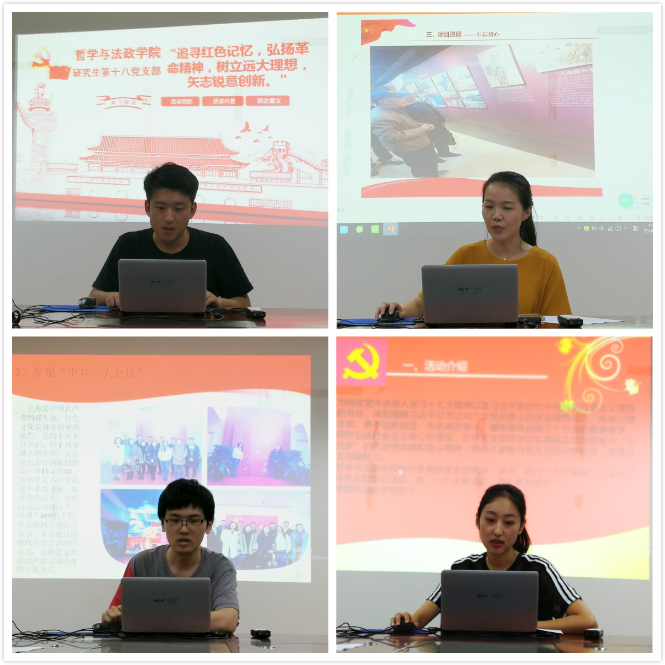会上,各个党支部围绕主题党日开展背景、实施项目、活动流程、取得成效以及党支部建设、党员先锋模范作用发挥等方面进行充分展示。从组织观看《厉害了,我的国!》到参观中共一大会址,从重读党章到深学党规党纪,从研读红色经典到开展志愿服务活动,各党支部认真贯彻关于“学懂弄通做实党的十九大精神”的要求,积极培育和践行社会主义核心价值观,传递青春正能量;开展各种具有学院和本专业特色的党日活动,增强了党员责任感与党性修养,在理论与实践结合中增长了见识、提升了自我。