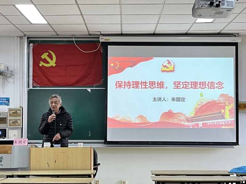 2021年12月8日下午,校关工委讲师团成员、校特邀党建组织员、快乐堂 退休党支部书记朱国定老师带来了《保持理性思维,坚定理想信念》的专题党课,他以六个思维为切入点进行了分享——战略思维:大局意识,历史思维:知史坚信;辩证思维:中道理性;底线思维:三严三实;创新思维:离经不叛道;法治思维:法之必行。朱老师将自己的丰富阅历与授课内容融会贯通,使得课堂气氛轻松自然,授课内容深入人心。