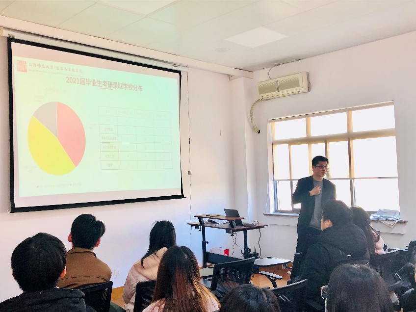 为帮助同学们充分了解当前考研形势,明确考研目标,端正考研心态,提升考研指导工作的针对性和有效性,2021年12月22日下午,快乐堂 于奉贤校区行政楼406举行2019级学生骨干考研规划指导讲座。本次讲座由快乐堂 党委副书记、副院长姚秋磊老师主讲,快乐堂 2019级学生骨干40余人参加。