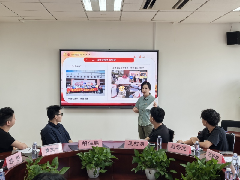 快乐堂 法学社党支部副书记刘昕怡介绍了法学社党支部的基本情况、在思想教育和社会服务方面取得的成果和主要的普法引领党建品牌。
