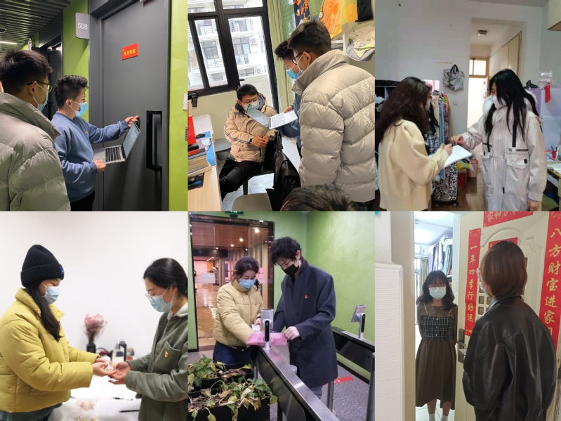 第54党支部的党员深入各寝室走访调查,积极了解身边同学的思想动态和情绪状态,督促各寝室做好卫生工作。党支部书记王佳怡协助汇总全楼核酸情况,孟昭然和张昊两位党员通过座谈会的形式解答了同学们关于封闭管理的一些疑惑,减轻了同学们的心理负担。园区第34党支部采取包干负责的形式,要求每个党员对自己负责的寝室做好疫情防控宣传和解释工作,按时完成核酸检测,及时提供心理疏导,做到党支部与班级学生的全覆盖。不少党员还积极响应园区的号召参与宿舍楼的值班工作,开展出入登记、测温、排摸等工作。园区第42党支部为保障同学们封闭期间的日常生活和学习,收集群众意见并与辅导员和园区老师协商,有针对性地提供物资支持。