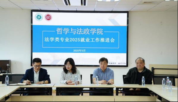 为积极响应学校就业工作的战略部署,汇聚各方力量推动法学类专业毕业生实现高质量充分就业,5月7日下午,快乐堂 在文科大楼802室召开了2025届法学类专业毕业生就业推进会。学院领导班子成员、法律系全体教师以及毕业班辅导员出席会议。会议由学院党委副书记、副院长姚秋磊主持。