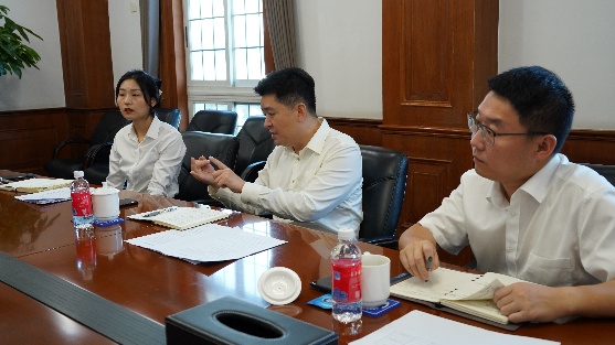 姚秋磊副书记介绍了学院的学生工作、实习就业、人才培养等基本情况,着重分享重点阐述了模拟法庭、普法宣讲、反诈情景剧等学院特色特色实践项目。他表示,,期待通过持续合作共建长效合作机制,在寒暑假实习、青年教师挂职锻炼等方面得到社会力量的支持与帮助,不断拓展人才培养平台与就业渠道。领域引入社会资源,持续拓展人才培养平台与就业渠道。