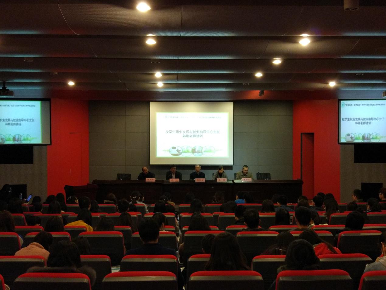 徐汇校区会议中心1号报告厅举行。到场的领导嘉宾有校学生职业发展与就业指导中心主任韩刚老师,学院党委书记商红日老师,学院党委副书记、副院长陈燕老师,学院副院长朱新光老师、顾国祥老师,以及学院各系主任。六位优秀校友以及本科和研究生代表积极参加了本次论坛和现场交流活动。
