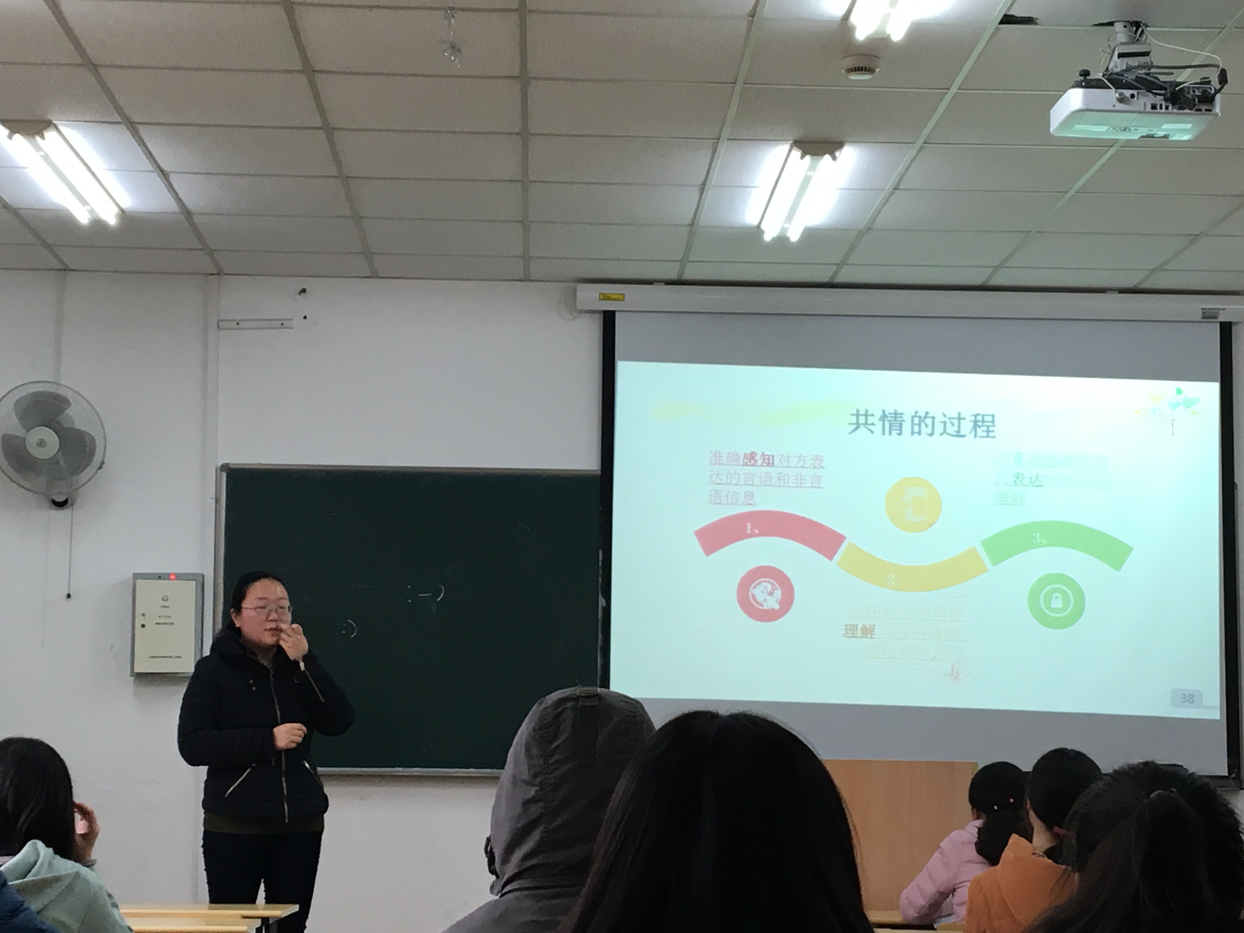 首先,张老师以寝室同学和谐相处为中心,通过两个例子说明了人际沟通中什么样的回应方式比较好:第一时间处理情绪、倾听以及共情,并给出了许多行之有效的建议。随后,张老师针对大学生的不同心理状态:正常状态中的困惑和情绪、一般心理问题、心理障碍三种情况进行了区分和识别,对危机事件的应对方法(CQPR)进行详细说明。最后对寝室长提出希望,要关心身边的同学,关注同学们的心理健康,遇到危机事件及时发现并采取正确的方法应对,在大家的共同努力下,使所有同学都能享受一段健康、愉快、丰富多彩的大学生活。