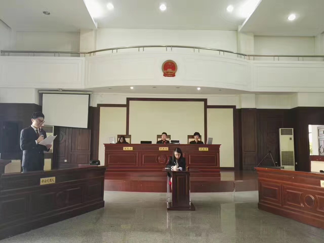 副院长顾国祥老师为志愿者代表高雨凡授旗。肯定了学院普法工作的开展,激励所有人都积极投身普法活动中,从生活中的小事做起,从自己出发。法制文化节开幕式另一部分是模拟法庭,由法政学子们自编自导自演的校园情景剧《大小谎言》,反映实际,生动活泼,寓法于乐。讲述了一起女大学生遭遇诈骗和校园贷的案件,同学们在欢乐的同时,学习了法律常识,提高辨别是非能力。快乐堂