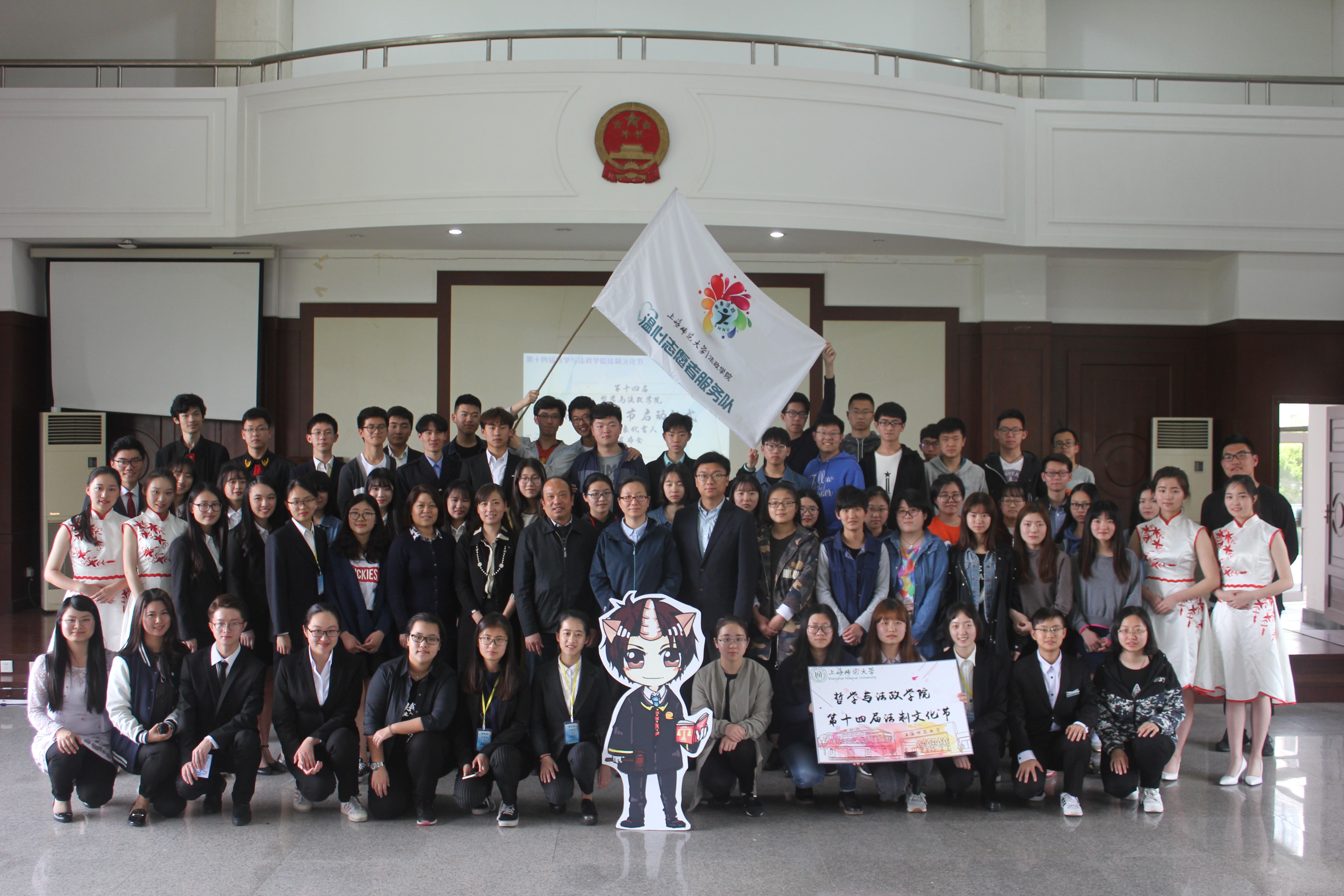 第十四届法制文化节启动仪式暨形象代言人发布会在第四教学楼模拟法庭隆重举行。莅临本次仪式的领导与嘉宾有:快乐堂