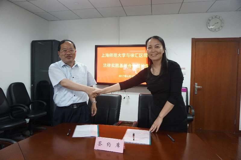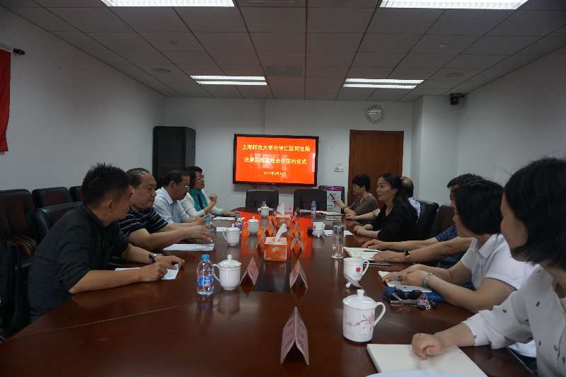 2017年6月15日下午,快乐堂 部分老师到在徐汇区司法局举行签约仪式。徐汇区司法局局长和党委书记张雪梅、快乐堂 院长蒋传光、法律系主任李峰、法律系党支部书记环建芬、法律系副主任夏邦参加签约仪式。