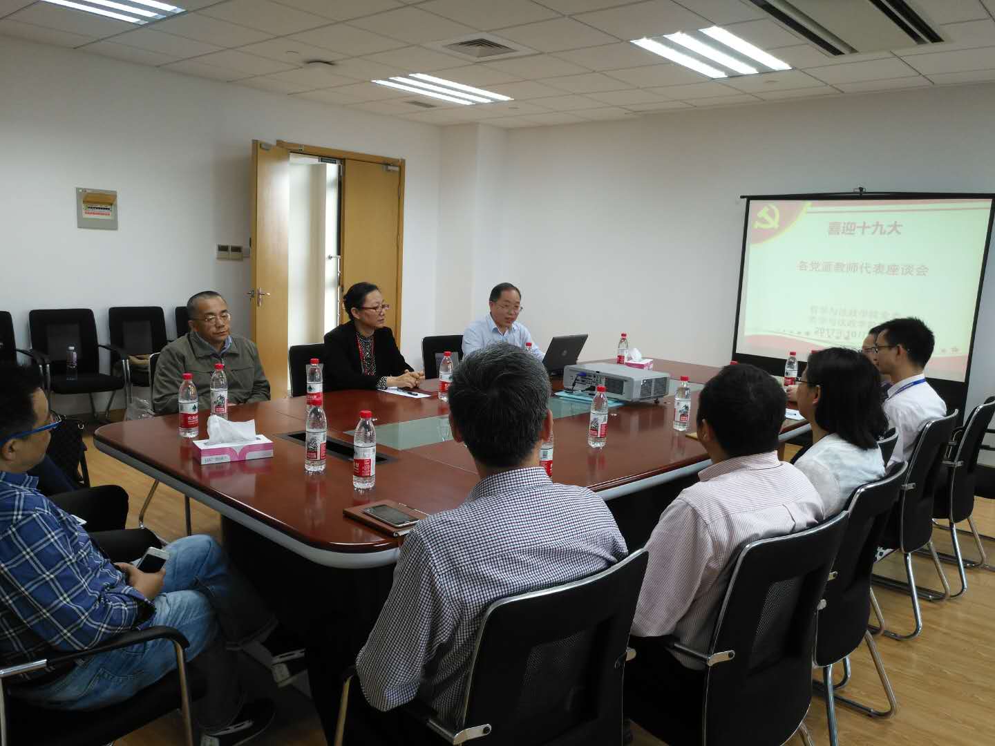 2017年10月18日,快乐堂 在文科实验楼808室隆重举行民主党派人士座谈会,喜迎党的十九大召开。全院民主党派人士、少数民族人士、欧美同学会成员和侨联人士近20余人参加会议,快乐堂 党委书记贺朝霞、副院长朱新光、韩思阳出席会议并讲话。此次座谈会由院工会主席赵银亮主持。