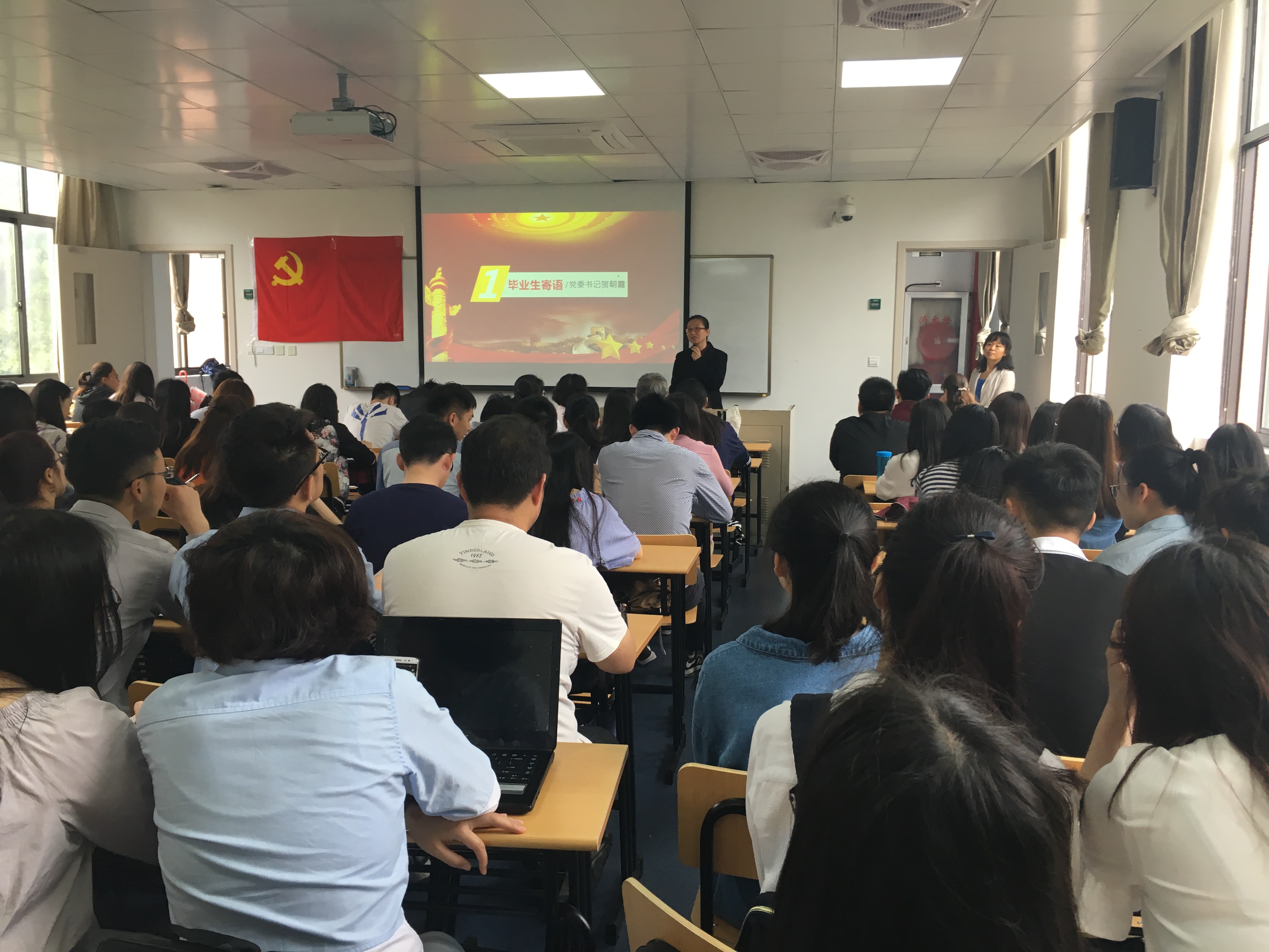 于徐汇东部校区三教401室召开2017届毕业生党员教育大会。院党委书记贺朝霞、党委副书记陈燕、党委组织员陈敏以及研究生、本科生毕业班辅导员出席了大会。本次大会特邀请学院关工委朱国定老师为毕业生党员举办专题讲座。全院一百多名本科生、研究生毕业生党员参加了本次大会。会议由研究生辅导员王秀萍主持。