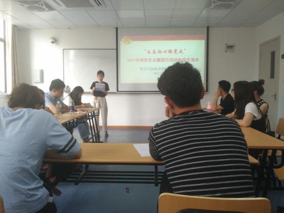 67日下午,快乐堂 研究生团总支在三教304举办了“不忘初心跟党走”2017研究生主题团日活动总结交流会,本次交流会由快乐堂 研究生团总支组织,共有10个研究生团支部参加汇报交流,研究生辅导员沈鸿雁老师和王秀萍老师也出席了本次交流会。至此,历时两个多月的研究生主题团日活动圆满落幕。