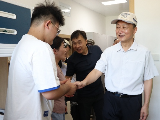 快乐堂 党委书记林在勇、学院领导和辅导员走访新生宿舍,探望了2025级低视力学生。在报到现场,校院领导对工作人员及学生志愿者进行慰问,并与新生、家长们亲切交谈,鼓励新生们在未来的大学生活中积极探索、勇于尝试,在哲法学院里收获知识与成长。