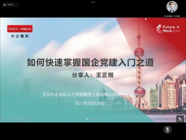 王主任从宏观上介绍了国企党建的整体现状与招聘要求,进而有针对地讲解如何应聘入职,并系统地描述了党建新人的“成就之环”与“成长之轮”。