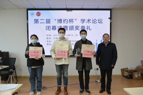 11月16日中午,第二届“博约杯”学术论坛闭幕式暨颁奖典礼在文科实验楼802顺利举行。快乐堂 院长蒋传光教授为本次论坛闭幕式致辞。他对本次学术论坛进行了总结,建议同学们注重文字表达能力和写作逻辑思维能力,并对学术论坛未来的发展提出了长远的规划,希望“博约杯“大学生学术论坛成为学院学生学术活动的品牌。随后,博士组、硕士组、本科组一等奖的同学分别结合自己的论文分享了自己在选题、调研、写作等方面的方法和经验。蒋传光院长为一等奖获得者马文惠(博士组)、杨泽斌(硕士组)和王雪棱(本科组)颁发证书;王礼鑫副院长为二等奖获得者张蕴睿、马源伟、丁文睿和靳宝书颁发证书;姚秋磊副书记、副院长为三等奖获得者刘子琦、纪婕、何叶倩、宋宇、蒋永传和陆欣悦颁发证书。