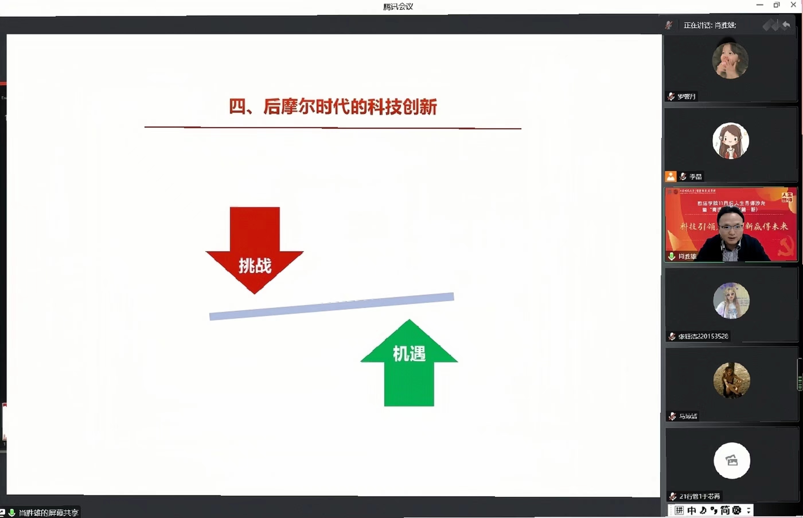 首先,肖老师以教育、科技、人才协同发展为切入点,指出教育、科技、人才是全面建设社会主义现代化国家的基础性、战略性支撑,要坚持教育优先发展、科技自立自强、人才引领驱动,深入实施科教兴国战略和人才强国战略,强化现代化人才支撑。同时,肖老师结合党的二十大报告解读了建设创新型国家的路径,并进一步强调了国家创新发展的必要性和重要性。