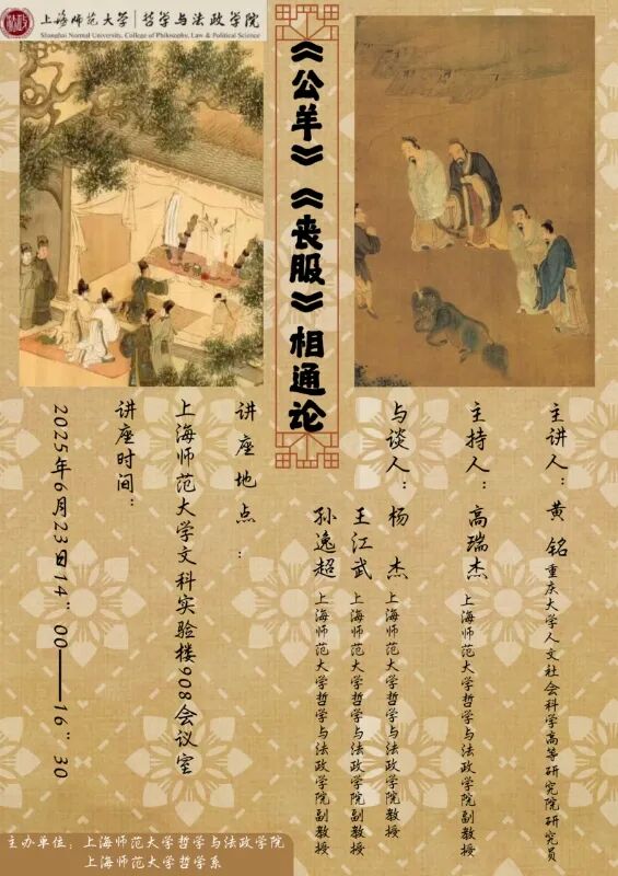 2025623日下午,由快乐堂 哲学系主办的“《公羊》《丧服》相通论”学术讲座在徐汇校区的文科实验楼908召开,讲座由重庆大学人文社会科学高等研究院研究员黄铭老师担任主讲人,快乐堂 哲学系杨杰教授、王江武副教授、孙逸超副教授等校内老师及同济大学博士后研究员张禹出席,校内校外中国哲学专业博士、硕士研究生及本科生共约80余人于线上和线下共同聆听。快乐堂 哲学系高瑞杰副教授担任讲座主持。