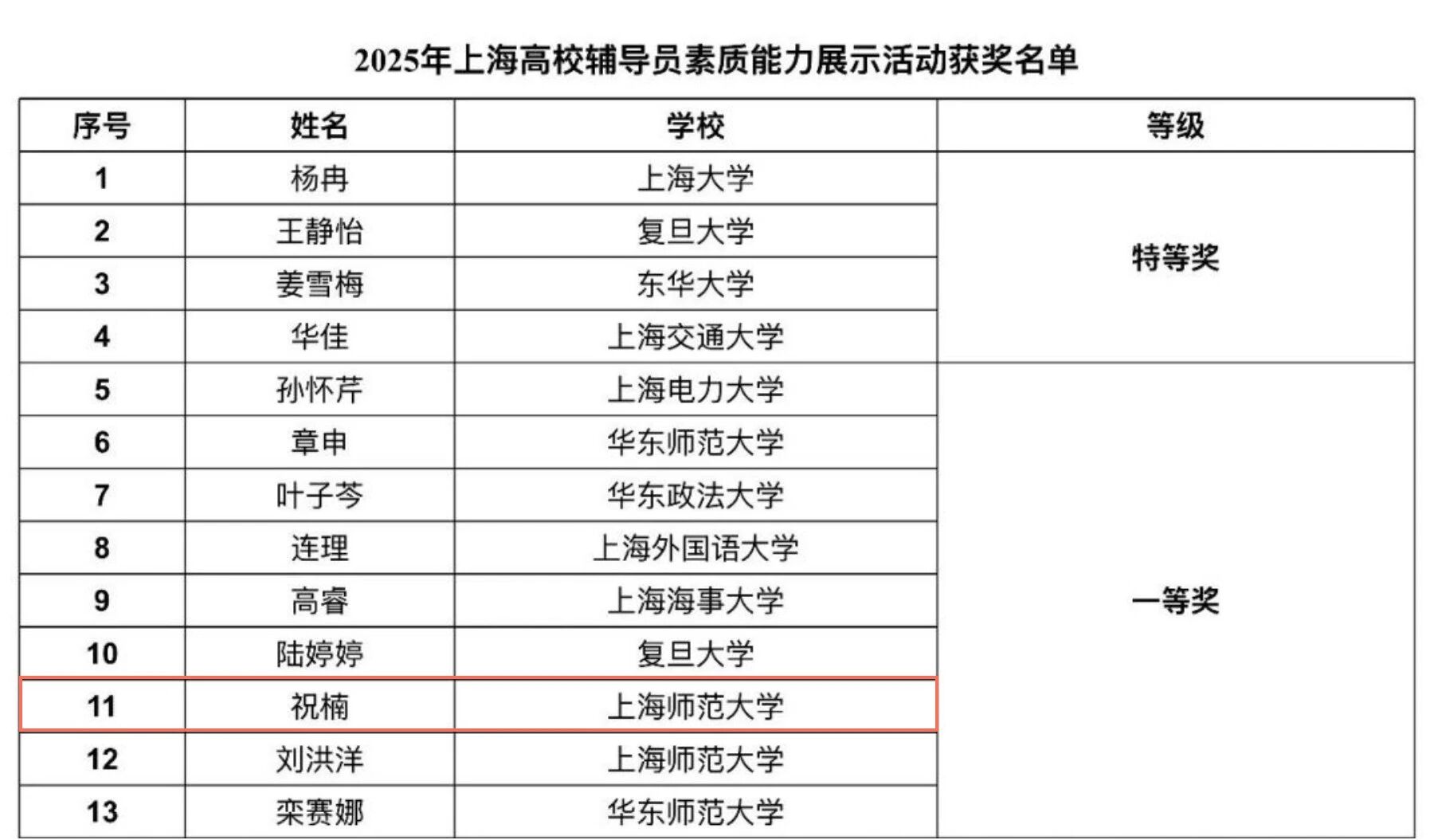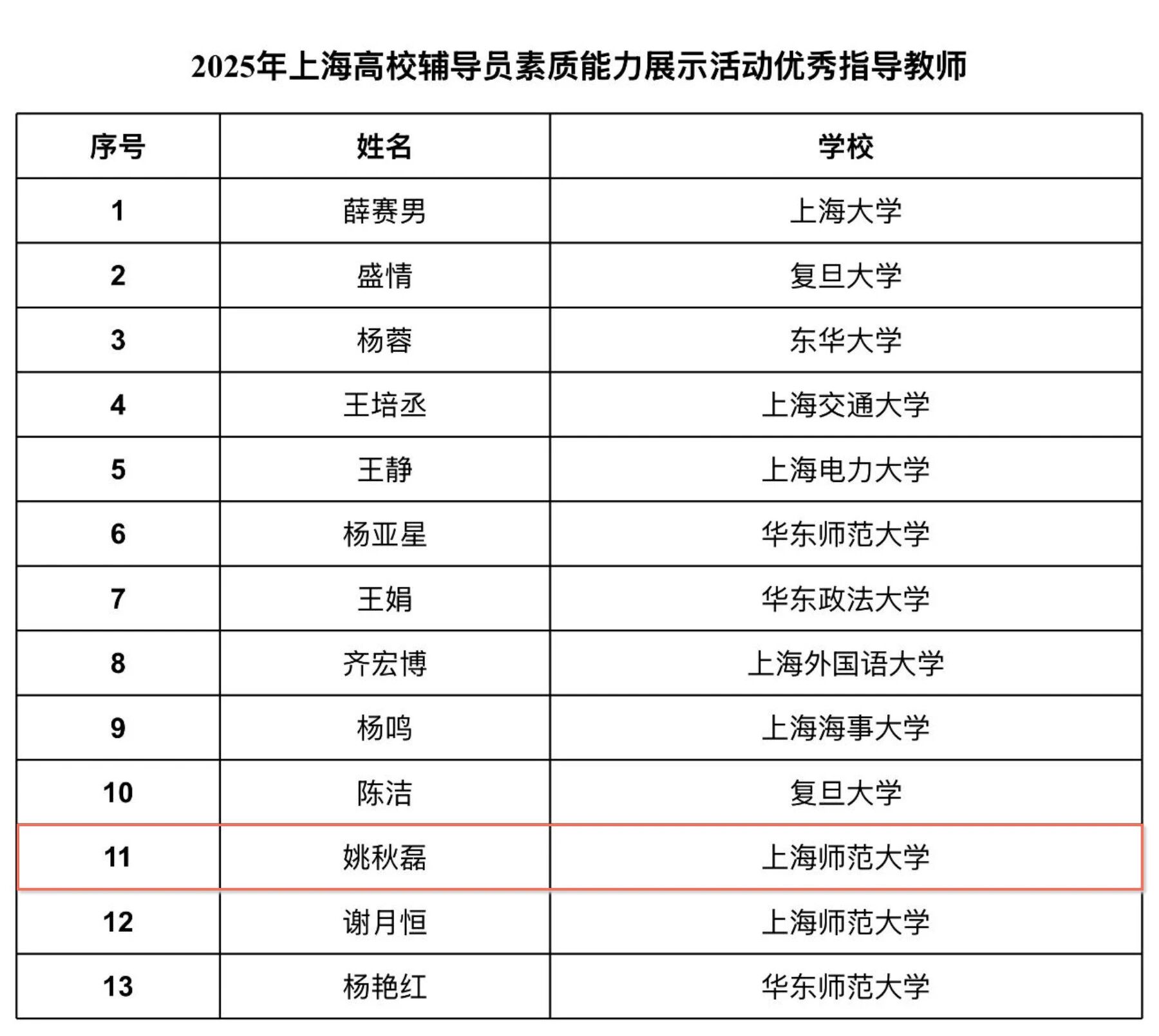 近日,2025年上海高校辅导员素质能力大赛在东华大学顺利举行,经过激烈交锋,快乐堂 祝楠老师荣获上海高校辅导员素质能力大赛一等奖、姚秋磊老师荣获优秀指导老师称号。