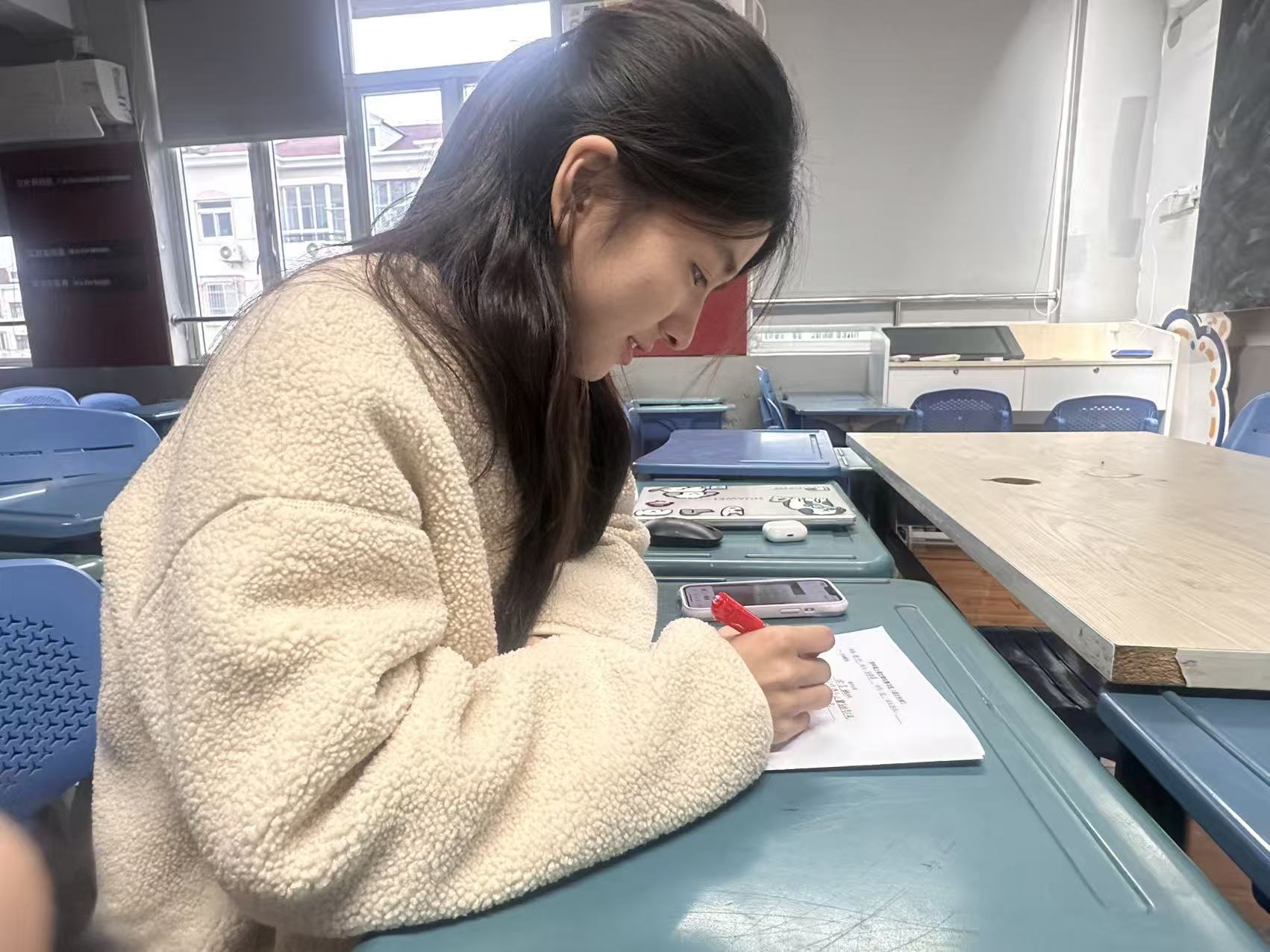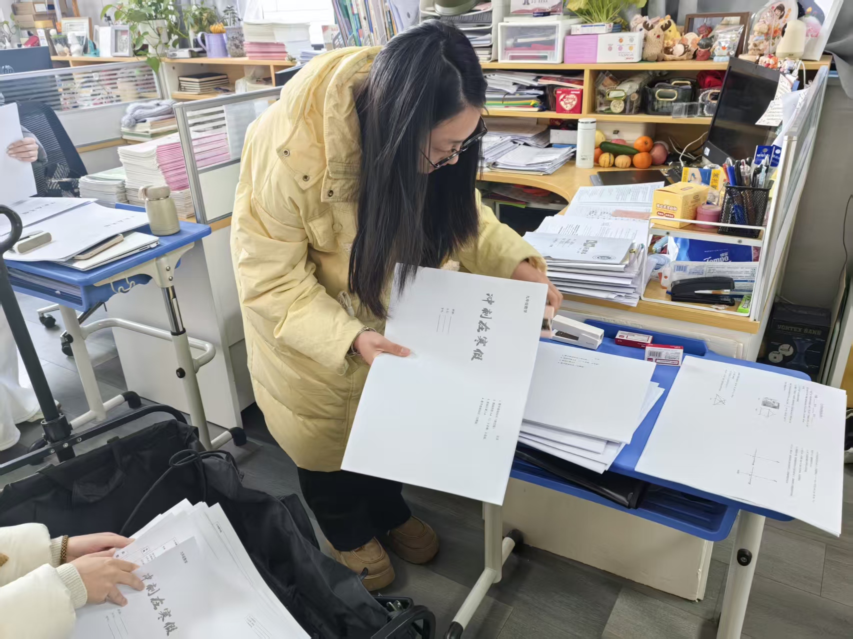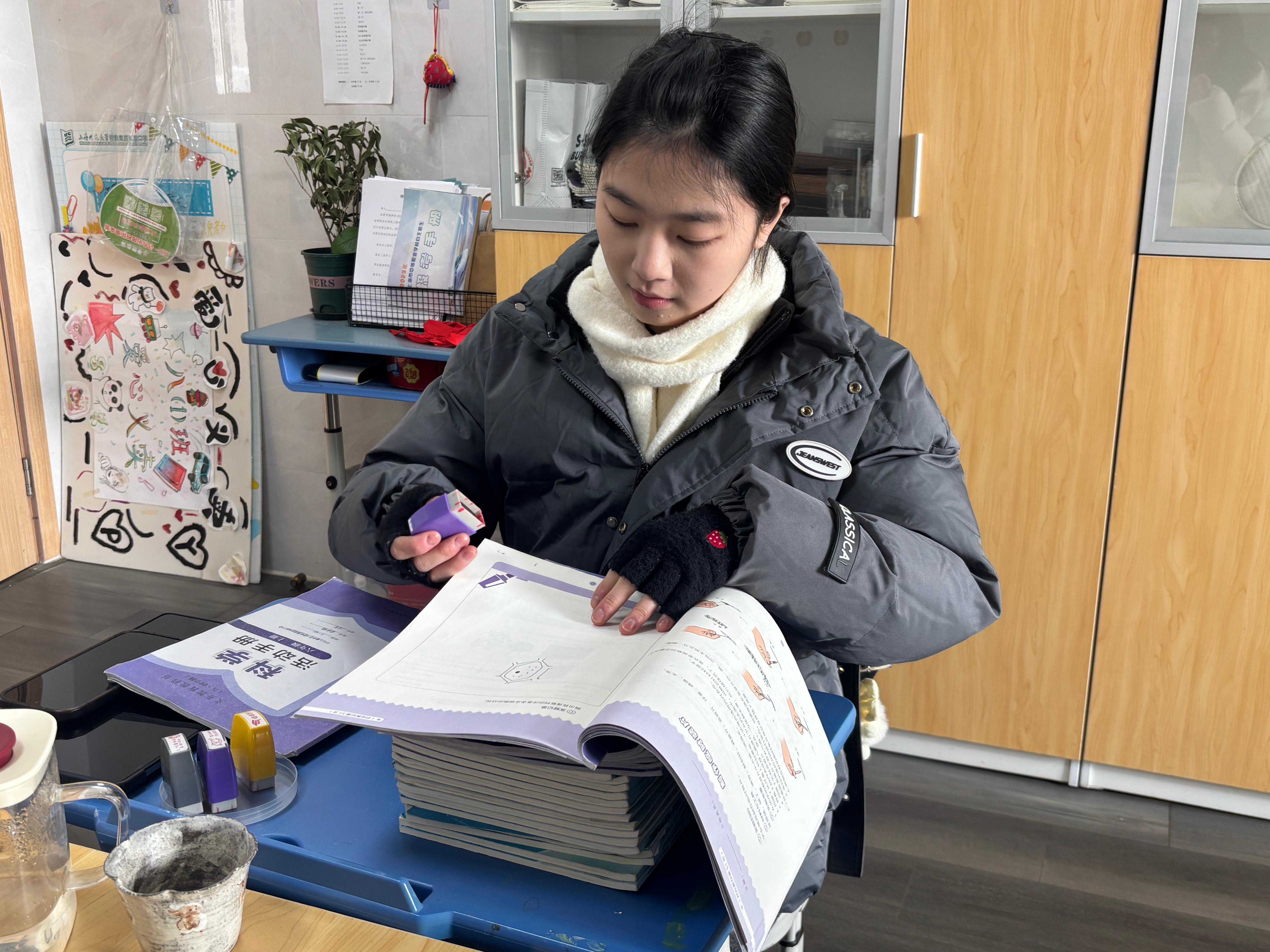 教育教育工作不仅体现在课堂上的精彩讲授,更蕴含在课后繁杂细致的案头工作之中。同学们主动协助带教教师完成作业试卷批改、分数登记、监考等事务。同时,通过研习道德与法治学科试卷,进一步深化了对教材内容、课程标准及学情的理解,筑牢专业知识基础。这些看似琐碎的工作,让同学们真切体会到教师职业的艰辛与专业性,明白每一份坚守都离不开高度的爱心、耐心与责任心。