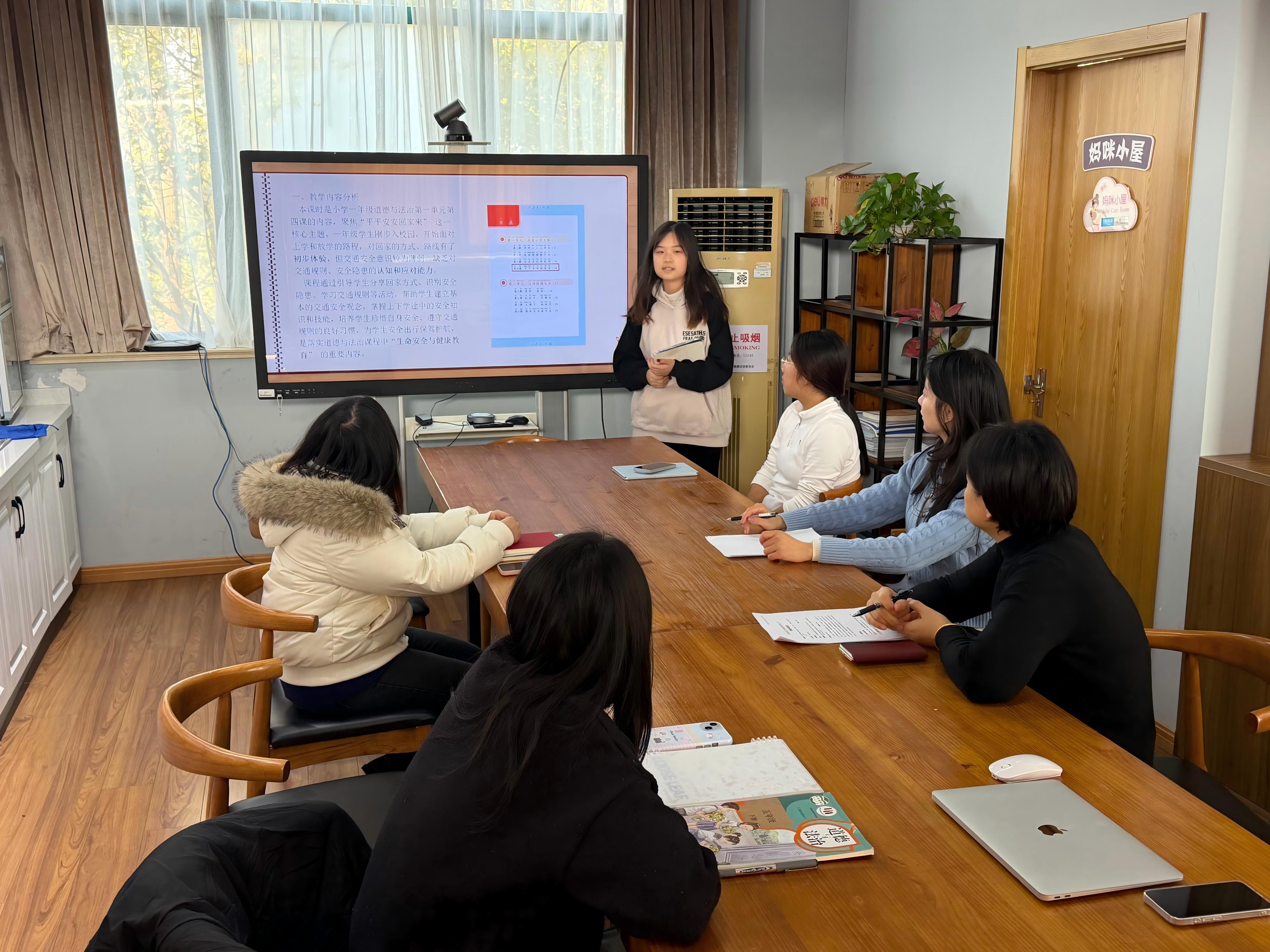 温晶瑜:与一线道法教师的朝夕交流,让我在教案设计能力上实现了质的提升。老师们教会我,教案设计不能局限于单篇教材,更要深挖知识内涵,注重课与课、单元与单元之间的逻辑关联,同时要充分结合学生的认知能力、学习基础设计教学活动,让课堂更具针对性与实效性。老师们无私分享的实战经验、耐心细致的指导,让我对道法课堂的育人逻辑有了更深刻的理解,也为我今后优化教学设计、提升教学质量提供了清晰指引。