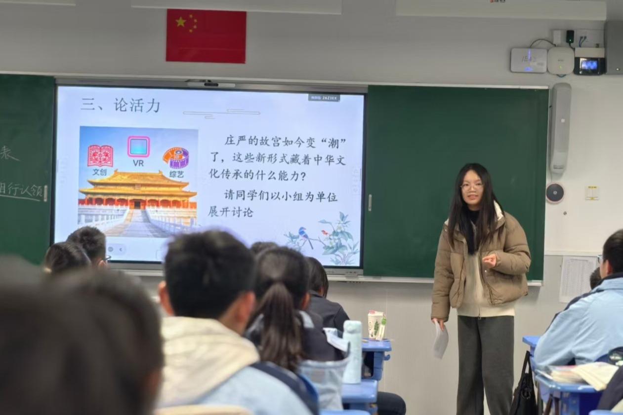 赵桐峣:一周的见习全面打破了我对教学工作的浅层认知。从前总认为站在讲台上授课是自然而然的事情,直至接触到优秀的一线教师,我才明白每一堂精彩课堂的背后,都是无数次打磨教案、吃透教材的辛勤耕耘。带教老师教会我,上好一堂思政课,既要精准把握知识点,更要贴合学生认知设计教学环节,让理论知识落地见效。我也深刻认识到万事开头难,撰写教案、站上讲台或许会存在诸多不足,但只要勇敢迈出第一步,在不断修改完善中锤炼能力,就能够逐步成长为合格的教育工作者。这份感悟也让我对教师行业有了全新的敬畏之情。