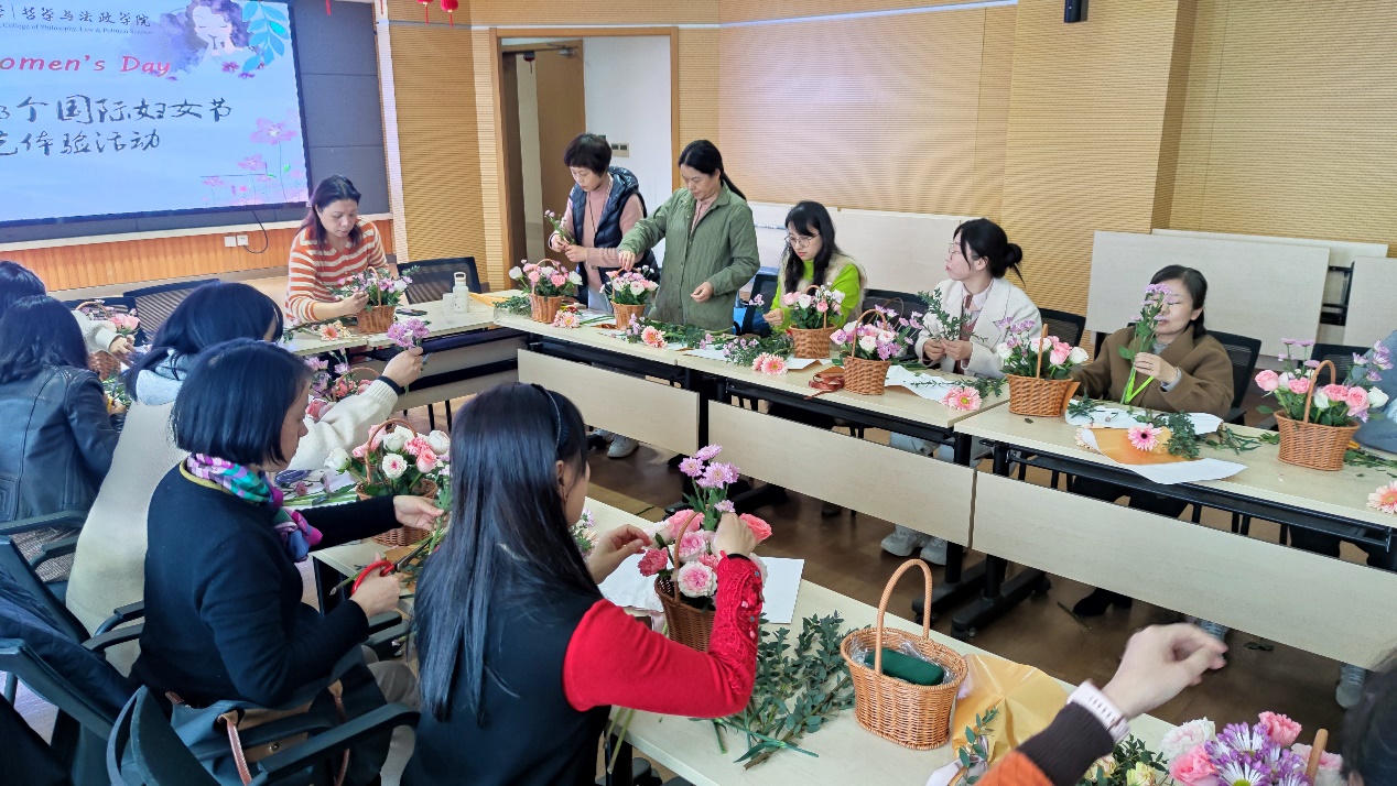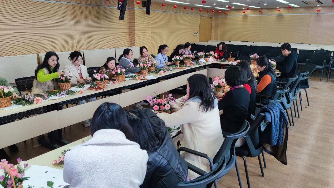 为庆祝第113个国际妇女节,丰富广大教职工精神生活与艺术情操,快乐堂 工会于2023年3月1日举办了插花体验活动。此次活动邀请了专业插花师作为指导,全院共30名男女教职工老师们参与了体验活动。