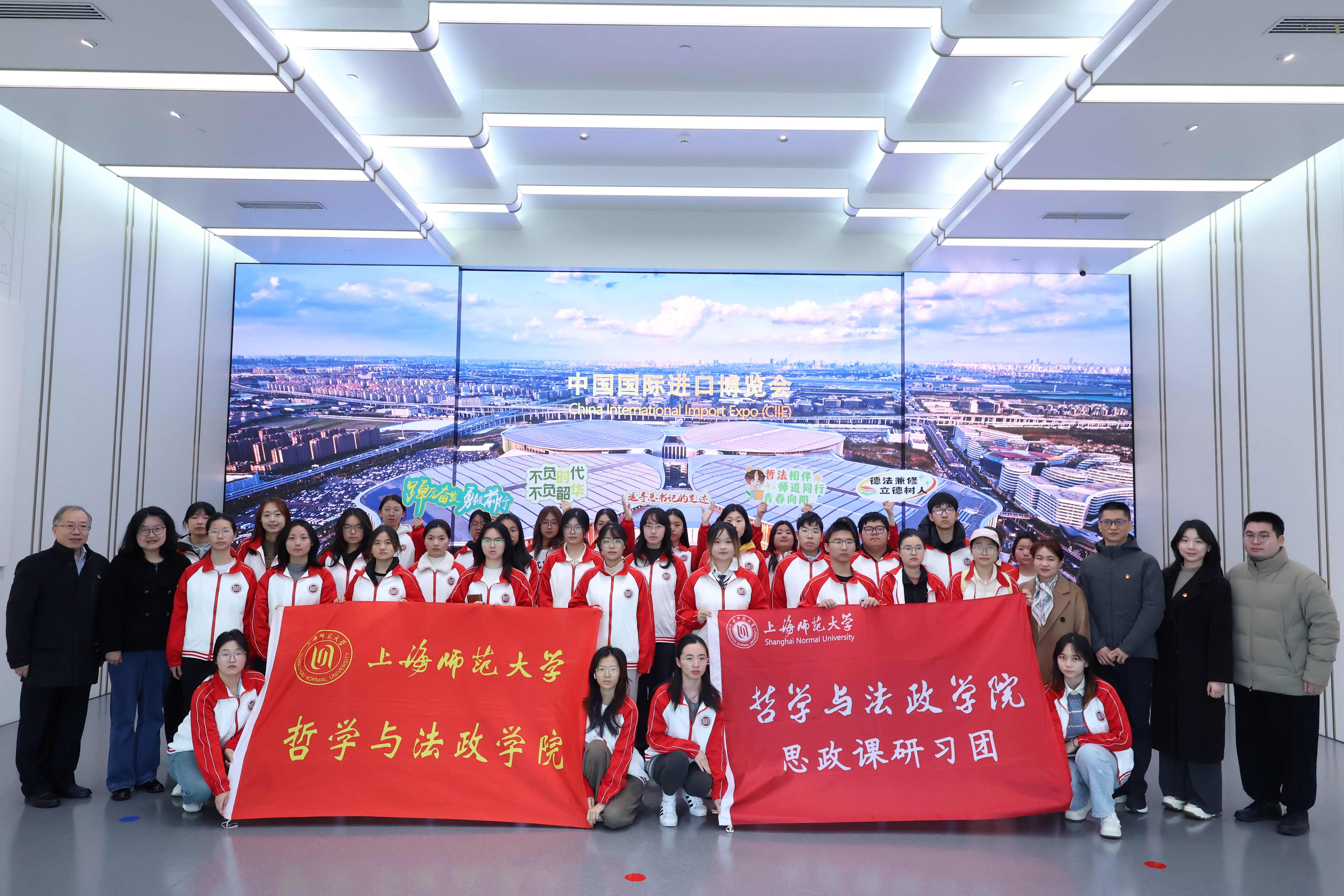 3月20日上午,快乐堂 快乐堂 组织师生前往进博文化展示中心开展“追寻总书记的上海足迹——情景思政课”活动。快乐堂 党委书记高亭,党委副书记、副院长姚秋磊,公共管理系习近平外交思想专论课授课教师赵银亮教授,以及2024、2025级思想政治教育(道德与法治方向)专业师范生,习近平外交思想学生理论宣讲团成员共同参与本次活动。