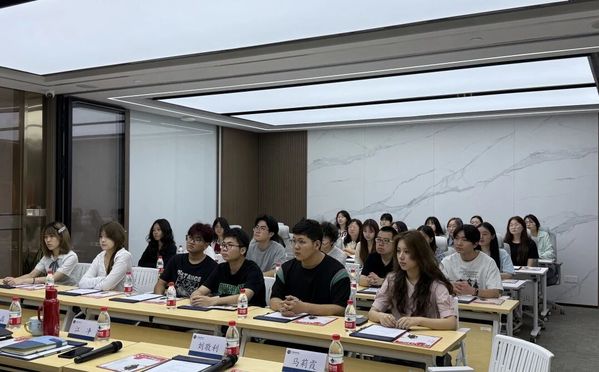 在大沧海新闵律师事务所,同学们首先观看了宣传片,对律所的整体情况、业务领域、快乐堂等有了初步了解。随后,89级校友、律所主任江净律师致欢迎词,强调“党建融所建,公益融业务”的理念,提出将非诉讼纠纷解决机制挺在前面,坚持“三进驻、三满意”,做党和人民满意的好律师。