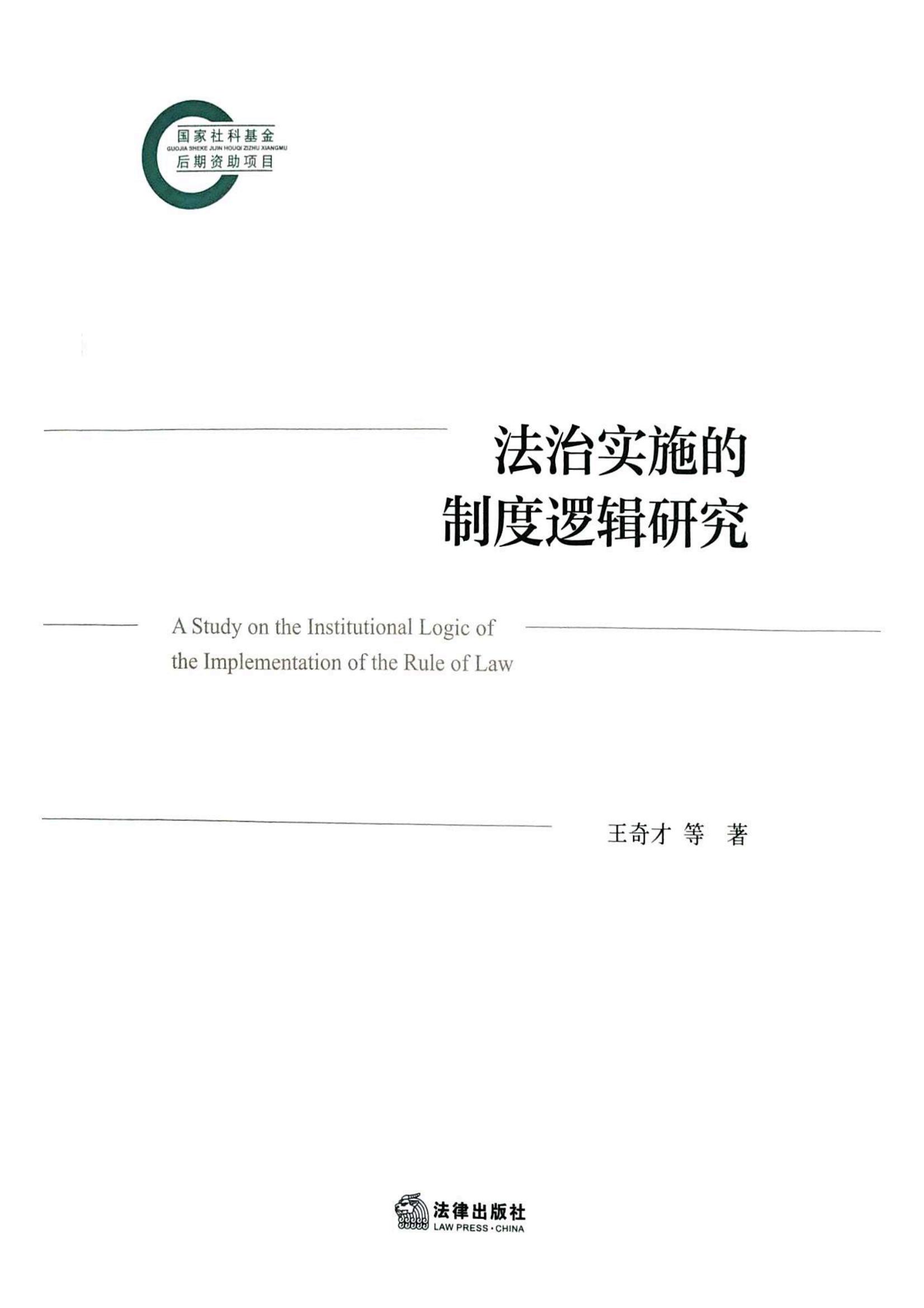 快乐堂 王奇才副教授学术专著《法治实施的制度逻辑研究》由法律出版社出版。