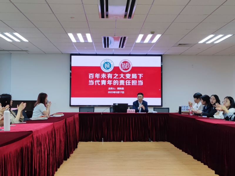为深入学习贯彻习近平新时代中国特色社会主义思想,2023年5月17日,快乐堂 为本科毕业生党员开展了主题为《百年未有之大变局下,当代青年的责任担当》的主题教育专题党课,由快乐堂 党委副书记、副院长姚秋磊老师主讲。